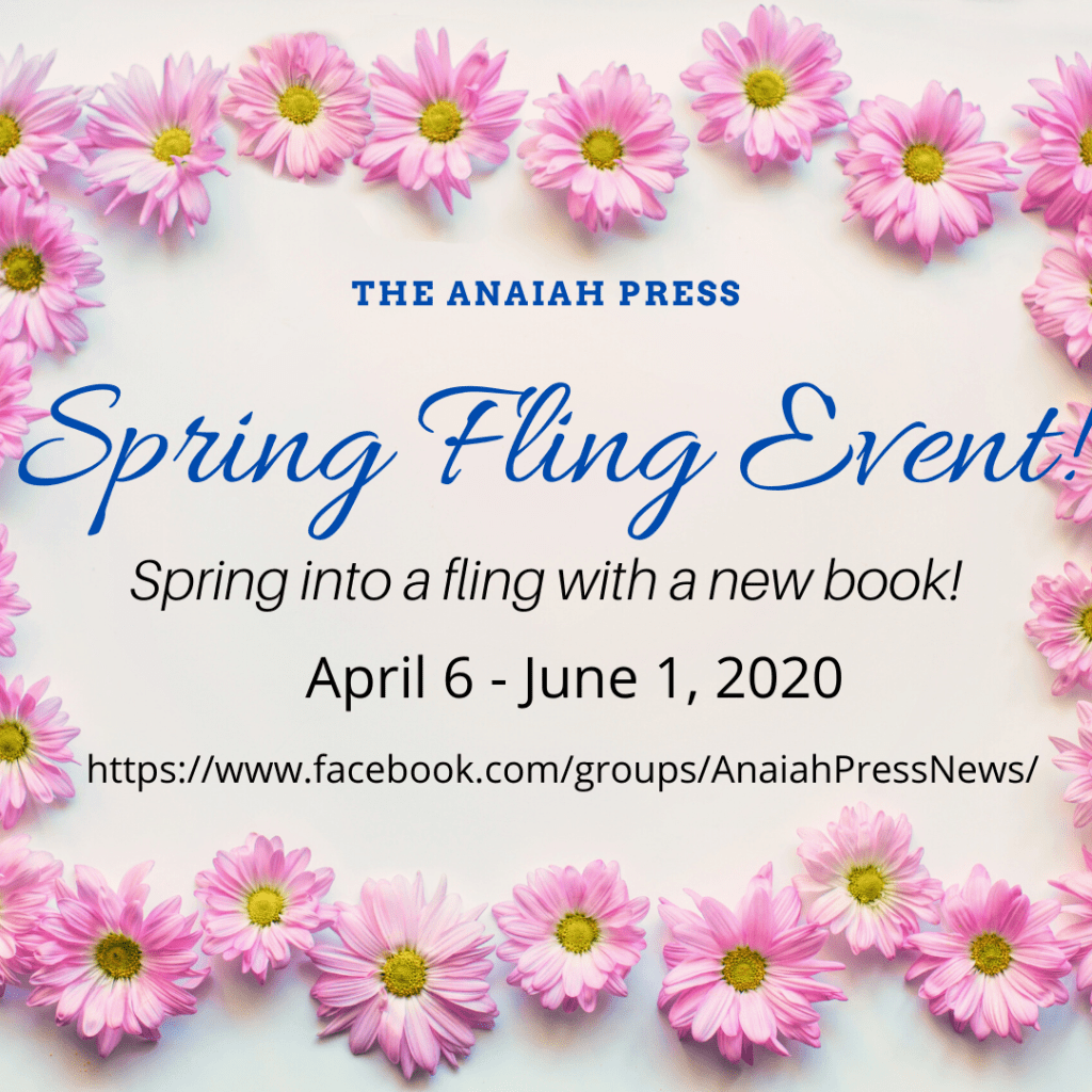On Saturday 5/9, I will be hosting the Anaiah Press Spring Fling for the day. I invite you to join me for a Virtual Christmas Party. I’ll be talking about my novella, sharing Christmas memories, and playing games. There will be prizes!